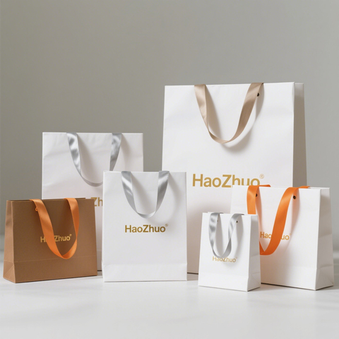 תיקי קניות יוקרתיים נייר קמעונאי יוקרה תוצרת בית ממוחזר לבן שקיות אריזה נייר עם לוגו משלך עבור מסחרי מסחרי